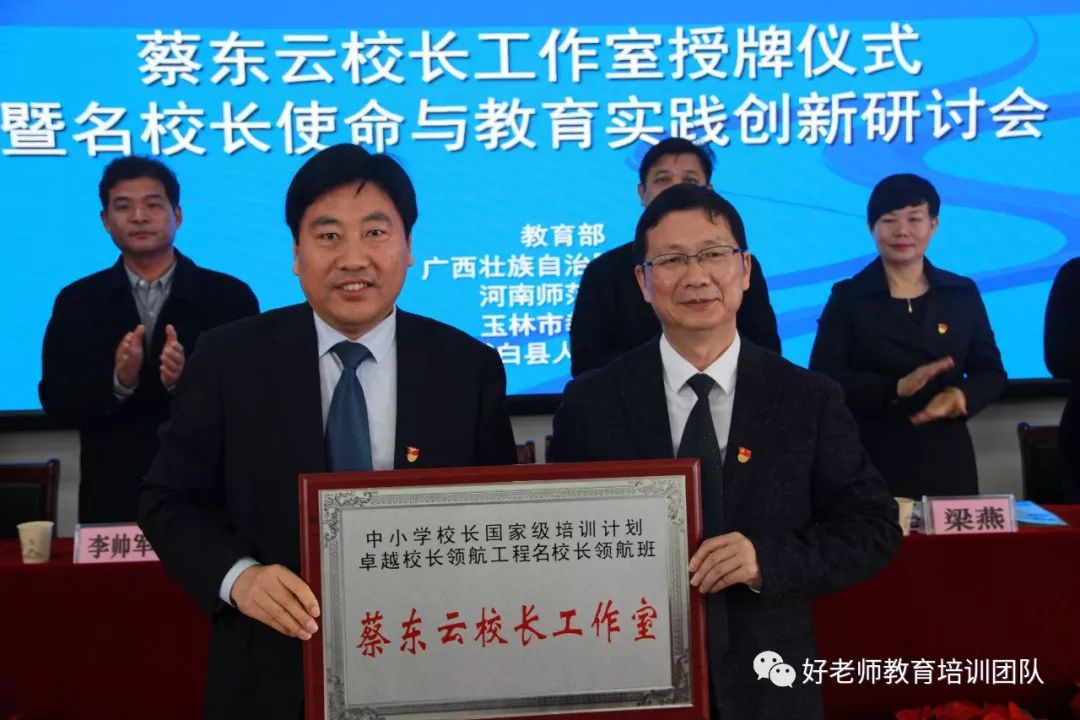 12月25日至28日,“国培计划”中小学名校长领航工程蔡东云校长工作室授牌仪式暨名校长使命与教育实践创新研讨会在广西博白县中学举行。我校党委副书记陈广文教授,玉林市教育局党组书记、局长蒋以超,博白县县委常委、宣传部部长、副县长梁燕出席活动。教育学院党委书记李帅军教授、博白县教育局负责人、博白县中小学校长及教师100余人参加授牌仪式。