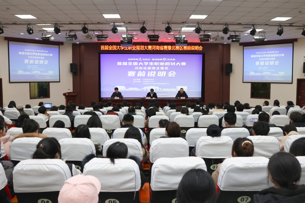筑梦青春志在四方,规划启航指引未来。3月1-2日,由河南省教育厅主办,、河南省大中专学生就业服务中心承办的首届全国大学生职业规划大赛河南省赛豫北分赛在我校拉开帷幕。河南省教育厅学生处处长李班、党委常委、副校长聂国兴出席大赛赛前说明会,来自豫北赛区32所高校近300名参赛师生参加会议。