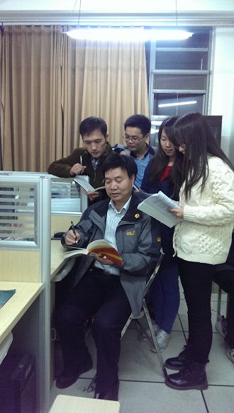叠放在薛占熬办公室的,除了课题学术材料,剩下的便都是党员学习材料。书架上整齐摆着的习近平总书记系列重要讲话读本和《求是》全被翻得布满皱褶。“他不管工作多么繁重,只要有时间就会翻看《求是》。薛老师一直向我们强调:家国一体、学做相济。只有坚定了内心的信仰、真正担负起国家重任,才不会是流浪式的盲目学习。”对党和家国的追随,和薛占熬在学术上寻求严密的执拗如出一辙,他的家国情怀早就悄然地贯彻在与学生们相处的举手投足间。