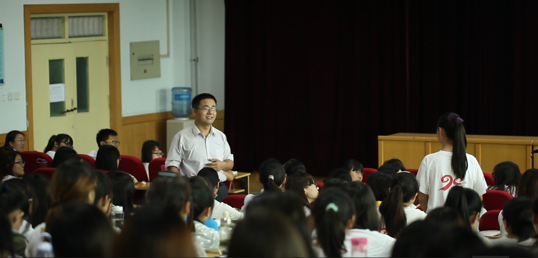 “Good morning,everyone,let’s watch a short video clip.(大家早上好,我们来看一段视频。)”在文昌楼的教室里,正在进行一场思想和语言的碰撞融合。刘国兵站在讲台前,以富有感染力的微笑引入课堂环节——观看英文历史剧片段。随着视频画面的缓缓呈现,学生们仰着头,仿佛被带入了一个全新的世界。视频暂停,刘国兵以温和且具有启发性的语气提问:“What choice do you think this man will make ?(你们认为这个人会做出怎样的选择呢?)”说罢,他将学生分成了几个小组,进行课堂讨论。