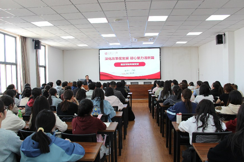 3月22日下午,体育学院在学院东区114会议室开展2025年春季开学思政第一课。院党委副书记王芳以“深入学习贯彻党的二十大报告”为题为学院师生讲授思政课。体育学院政工干部及学生代表共计100余人参加。
