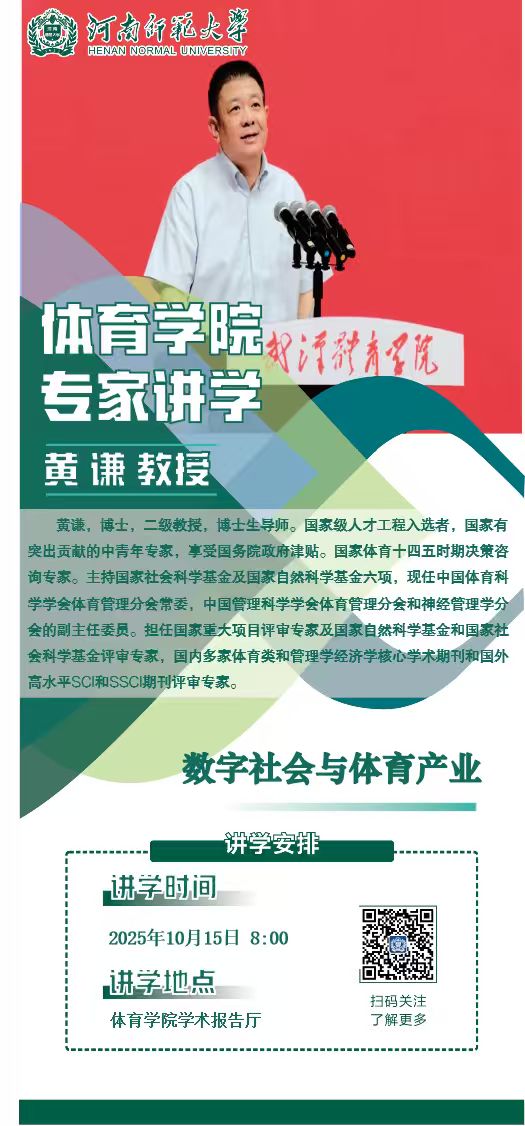 武汉体育学院黄谦教授将应邀做客“体育博雅论坛”