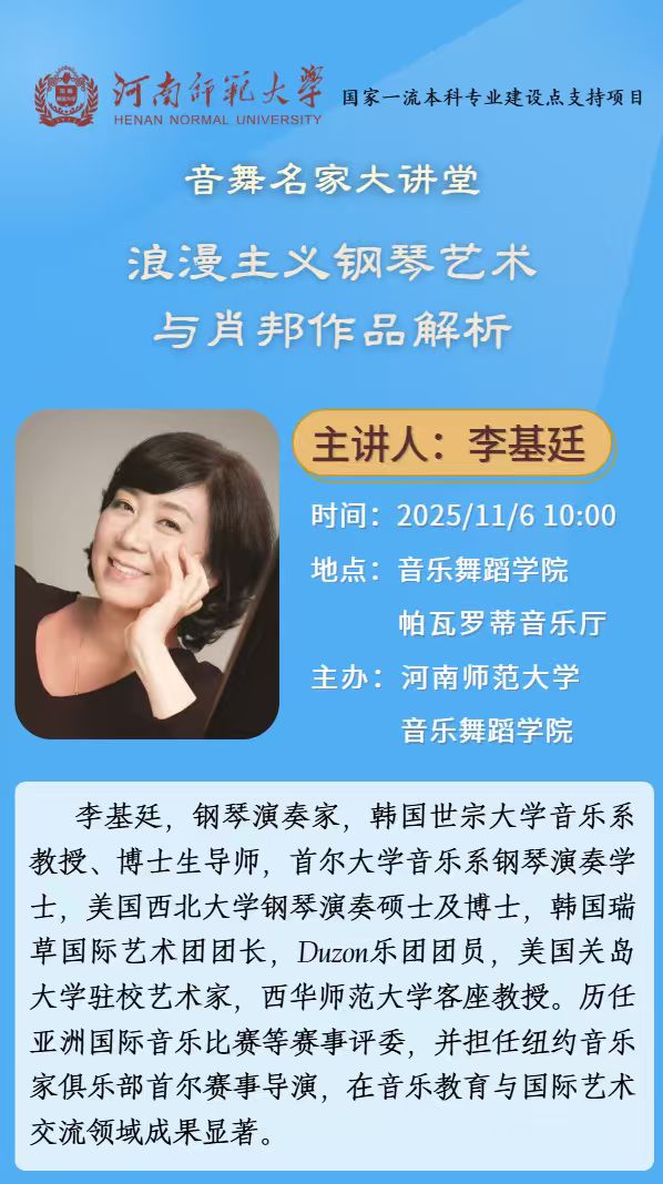 韩国世宗大学李基廷教授将应邀做客“音舞名家大讲堂”