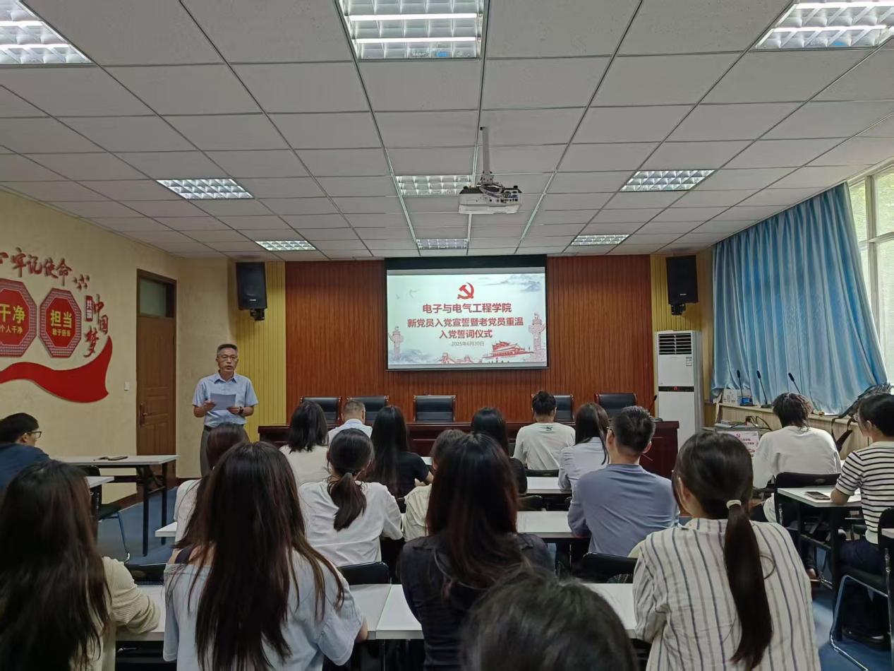 为进一步增强党员党性修养,在中国共产党成立104周年之际,6月30日下午,我院党委在学院c208会议室举行新党员入党宣誓暨老党员重温入党誓词主题党日活动。学院党委委员、各支部书记及学生党员代表参加。活动由学院副院长耿建泽主持。