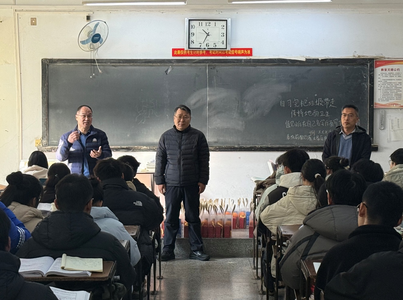 随着2026届考研进入最后冲刺阶段,为缓解学生备考压力、传递我院关怀,2025年11月21日上午,我院党委书记高飞、院长于坤、副院长耿建泽以及辅导员孙冉走进考研自习室,开展考研学子专项慰问活动。