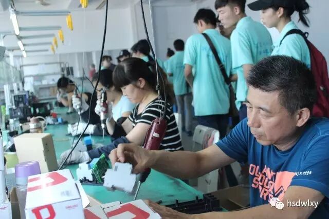 流水线上各位工人们认真细致地工作,每一个零件、每一个电路集成板都凝聚着工人们的心血;