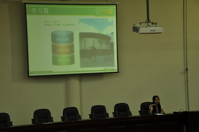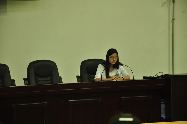 韩婷同学主讲学习篇。她通过语言、专业知识以及德国生活的细节三方面,向大家讲述了自己所学到的知识,以及此过程中的乐事。贾思彧同学主讲风情篇,她采用照片的形式向大家讲述了此次活动中所感受到的德国风土人情。同时,她与大家分享了交流团在德国发生的趣事。薛凌云同学主讲梦想篇。她以自身的经历,向大家讲述了自己下定决心出国深造的心理历程,以及此次活动带给她的深刻影响。09级的宋轩同学申请了留学德国的项目,他从自身的角度,向大家分析了此项目的优缺点,与大家分享了申请德国留学的经验,并建议适合此项目的同学抓住机会。