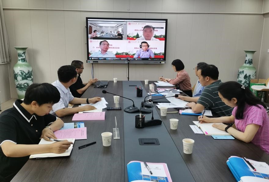 5月31日下午,外国语学院在三楼会议室召开本科人才培养方案校级论证会。郑州大学外国语与国际关系学院院长、教育部外国语言文学类专业教指委委员、河南省外国语言文学类专业教指委主任委员钱建成教授,江苏师范大学外国语学院院长、教育部外国语言文学类专业教指委委员潘震教授,中国人民大学外国语学院学术委员会主任、教育部外国语言文学类专业教指委委员李铭敬教授参加线上论证会。教务处副处长姜玉钦、外国语学院领导班子成员、各专业负责人与骨干教师参加会议。会议由外国语学院副院长张军民主持。