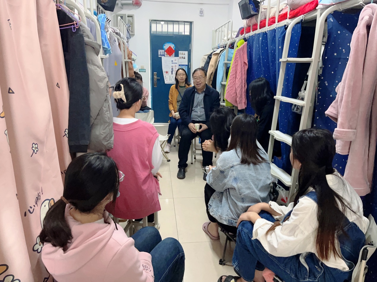 3月7日下午,外国语学院党委书记赵成福、副书记曹崇、2019级专兼职辅导员深入学院毕业生宿舍进行谈心谈话,开展2023年春季开学思政第一课活动。