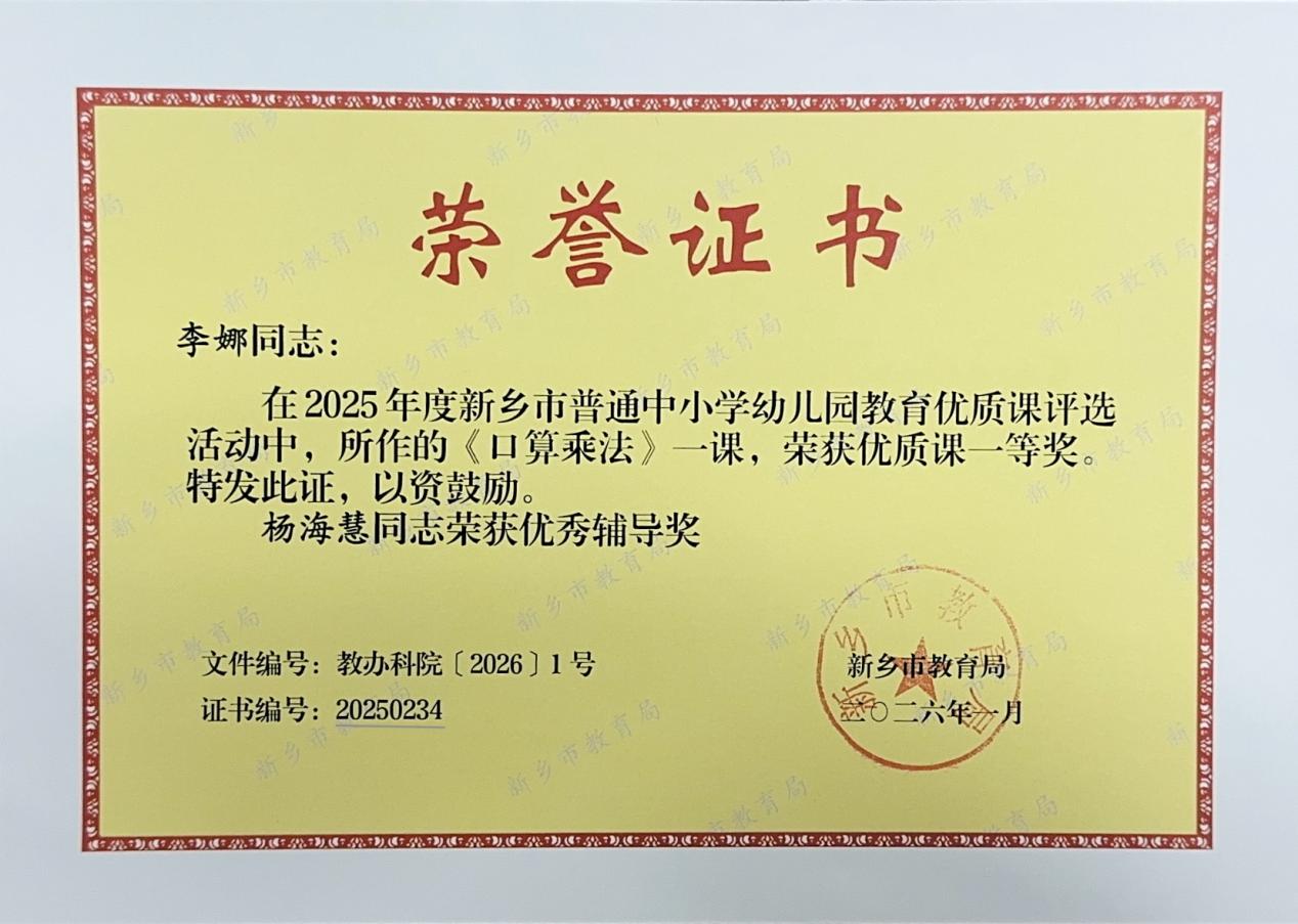 在2025年度新乡市普通中小学幼儿园教育优质课评选活动中,我校两位教师凭借扎实的教学功底、创新的教学设计与灵动的课堂呈现,双双斩获市级一等奖,用实力书写了附小教师的专业风采与育人担当。