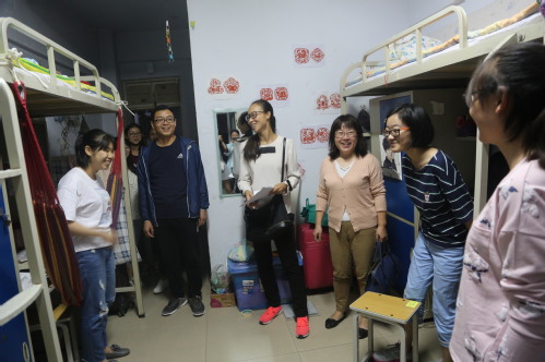 梁作振首先对各位前来参与宿舍走访的老师们表示工作上的肯定,希望各级辅导员与各班班主任在今后的学生工作中继续相互配合,积极走进学生生活中去,在关键时候给予学生足够的帮助与关怀。在我院各班级生活委员的引领下,老师们一行来到2015级与2016级各宿舍,与同学们展开亲切的交流。在谈话中,梁作振询问了学生们的假期生活情况并表示希望同学们快速调整状态,尽早投入到新学期的生活与学习中。走访过程中,领导老师们就宿舍卫生及宿舍美化方面给出了指导与建议,并就宿舍居住安全度与舒适度进行了细致考察。对于同学们在居住过程中普遍遇到的问题,领导老师们展开深入讨论并留下照片记录,向同学们保证一定妥善处理。他们体贴而具有亲和力的态度受到了同学们的广泛赞誉。
