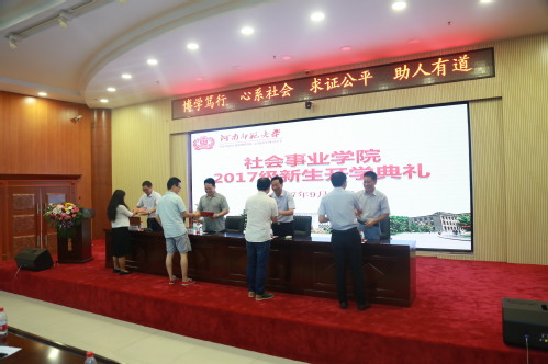 典礼最后,我院党委书记魏雷东宣读了《社会事业学院关于聘任2017级本科生班主任的决定》并现场为新聘班主任颁发证书。