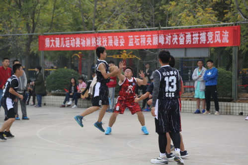 总决赛由社会事业学院对战新联学院。院党委书记魏雷东、院长高中建、党委副书记梁作振、2014级辅导员范子泉、2016级辅导员田嘉玺亲临现场督战助威,激发了队员们的斗志,大大鼓舞了士气。裁判员一声哨响,比赛正式开始,我方队员以迅雷之势抢占先机,夺得投球机会。13号队员陈锡生一个腾空盖帽,3分球稳稳落入球框。对方球员随即展开攻势,我方队员全神贯注地投入到激烈的“对战”之中。随着时间的推移,精彩镜头不断上演,灵活的过人技巧、空接、盖帽、花式运球等一流技术被毫不遗留的展示出来,我方队员们娴熟精妙的技术引来观众们的阵阵喝彩与掌声。比赛中,我方队员意外受伤,简单处理伤口后当即要求回归赛场,彰显了永不退缩、迎难而上的运动精神。