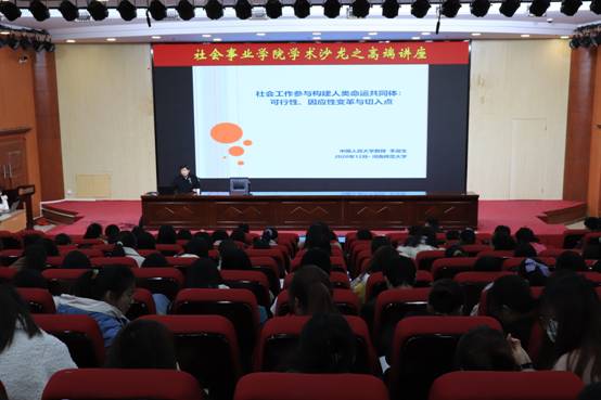 12月4日下午,中国人民大学社会与人口学院教授、博士生导师李迎生应学院邀请在思想政治理论课实践教学平台作了题为“社会工作参与构建人类命运共同体:可行性、因应性变革与切入点”的学术讲座。学院社会工作专业教师、部分研究生及本科生共计二百余人聆听此次讲座。讲座由张长伟教授主持。