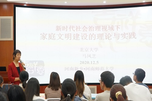 讲座中,马凤芝以疫情中家庭的作用为切入点,阐述了家庭功能及其社会意义,论述家庭建设对社会治理的重要性。通过讲述社会变迁对中国人家庭观的影响,她提出应在中国传统“家文化”的基础下建设家庭文明。她强调,在经济社会的迅速变迁中,受到市场经济发展、教育扩张、人口大规模流动、西方价值观念冲击等因素的影响,中国人的家庭观念受到冲击,面临一些问题和挑战,但关怀伦理仍然是家庭文明的核心价值,仍需要新时代家庭文明的社会构建和实践来帮助社会治理。