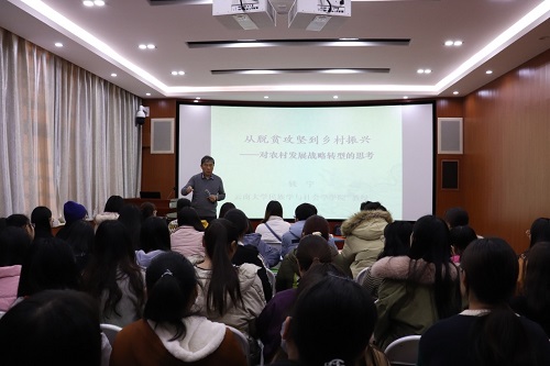 12月5日,应我院邀请,云南大学民族学与社会学学院教授钱宁在崇智楼503室作了题为“从扶贫攻坚到乡村振兴——对农村发展战略转型的思考”的学术讲座。学院教师代表、相关专业学生60余人共同聆听此次讲座。讲座由学院教授王君健主持。