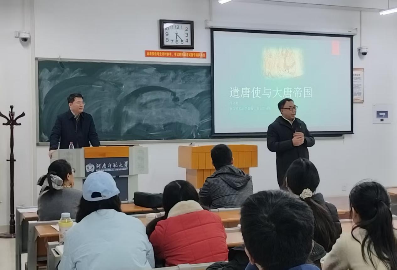冯立君教授以《遣唐使与唐朝外交》为题,结合自身多年研究经验,围绕“什么是遣唐使?”“为什么派出遣唐使?”“遣唐使有什么活动和故事?”“遣唐使有怎样的历史影像?”四个问题进行展开,并在此基础上论证了唐朝与周边国家和地区的密切联系。讲座最后,冯立君教授还对大家关心的域外汉文文献等问题进行了解答。