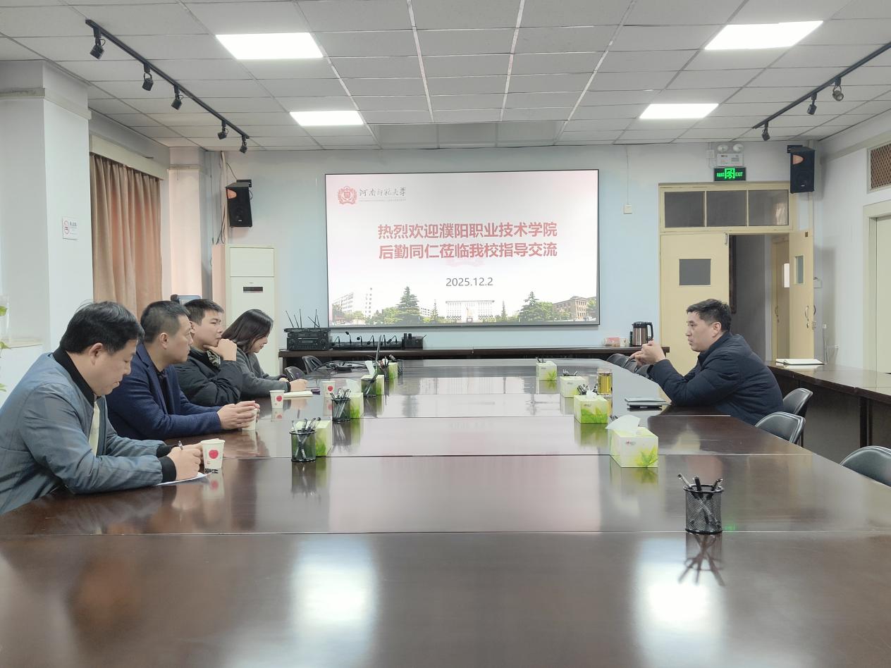 12月2日下午,濮阳职业技术学院后勤服务中心主任王莹一行4人莅临我校,就后勤服务与管理工作开展专题调研交流。座谈会在文渊楼529会议室举行,我校后勤服务保障部副部长赵胜杰热情接待并主持会议。