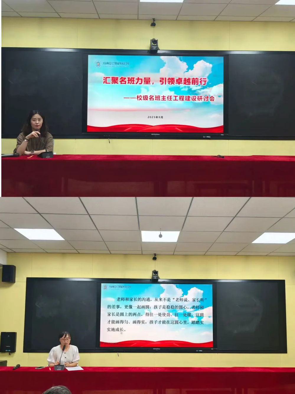 2025年8月29日和30日上午,为夯实教师专业素养,筑牢教育教学根基,迎接新学期的到来,附属外国语学校组织教师开展了岗前培训活动。29日上午,学校邀请了文学院刘安娜副教授举办了“我们一起同行——弘扬教育家精神,做新时代好教师”主题讲座,并聘任刘安娜副教授为我校“智库领航专家库”成员。29日下午,为进一步明确办学方向,增强教师队伍的凝聚力,罗强校长结合我校的“文化育人体系建设规划”,向老师们进行详细解读。30日上午,德育处组织全体班主任和新入职教师进行培训。任佳和许倩倩老师作为班主任代表,结合自身的班级管理实践经验,与参会教师进行了交流。