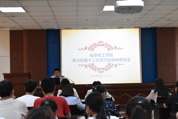 为学习宣传贯彻学校第十二次党代会精神。化学化工学院于5月16日中午在化学北楼五楼会议室召开团学系统学习校第十二次党代会精神报告会。报告由学院团委书记卢鑫担任主讲,学院团委学生会及各年级主要学生干部共计100余人聆听了报告。