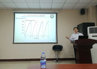 胡长文教授作了题目为“多酸催化研究进展”的学术报告。他讲述了多酸催化的原理及相关研究背景,介绍了其课题组以多酸为催化剂在选择性催化合成醛酮、催化转化CO2合成环状碳酸酯、催化降解化学战剂等方面的研究进展。