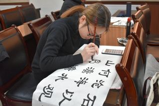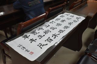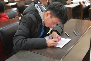 首先,工作人员宣布比赛内容和要求,并分发书写纸张。参赛选手分为硬笔书法和软笔书法两组并在规定位置就坐。比赛开始后,在优雅的歌声氛围下,参赛选手紧张有序的进行着比赛。其中,软笔书法比赛的参赛选手洒脱自然地书写着《观沧海》节选内容,硬笔书法比赛参赛选手书写着《短歌行》以及规定的化学方程式。全场选手全神贯注、认真书写,一时间,现场只能听见“沙沙”的笔尖摩擦纸张的声音,一幅幅优秀作品跃然纸上,令人赞叹不已。比赛结束后,参赛选手聚在一起进行探讨,大家纷纷表示,通过本次比赛结识到不少书法爱好者,日后定会多多交流,提高书写功底。