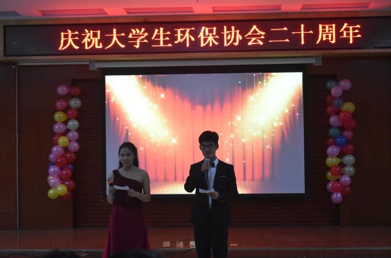 晚会在热情四射的啦啦操中正式拉开帷幕。随后,主持人带领观众们回顾了大学生环保协会自成立以来取得的骄人成绩,大家共同向环协致以诚挚的祝福。随后,诙谐幽默的脱口秀《论雾霾》点燃全场的气氛。青春靓丽的环保T台秀则展现了社团成员们的多才多艺。模特们身穿的服装均由常见的废弃包装物制成,独具匠心的设计充分体现了环保理念,赢得了在场观众的高度评价。歌曲串烧,小品,京剧等节目为同学们带来一场视听盛宴。由环协成员带来的快闪舞蹈带动大家跟随节奏拍手,在场人员充分参与其中,晚会气氛达到高潮。最后,大家为环协送上生日蛋糕,全场同唱生日歌,共同祝福大学生环保协会20周岁生日快乐。在优美真挚的歌声中,各位领导老师与全体工作人员合影留念,庆典完美落下帷幕。本场晚会紧扣环保主题,并采取线上直播的方式,收到了广泛好评。