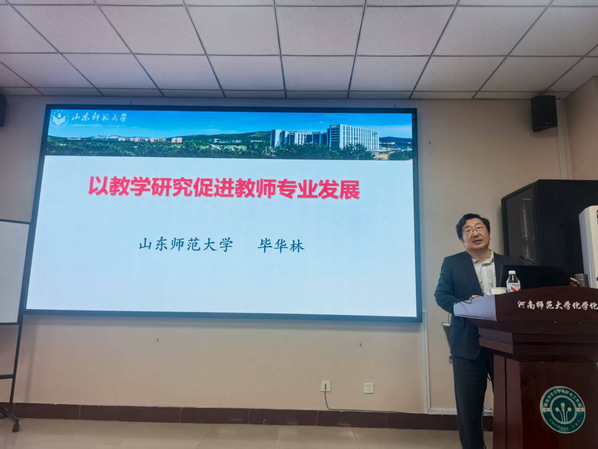 为加强学术交流,提升我院化学教育类研究生的培养质量,9月20日,山东师范大学二级教授、化学教学论专业博士生导师,教育部高等学校大学化学课程教学指导委员会委员、中国教育学会化学教学专业委员会副理事长毕华林教授应邀来我校作题为《以教学研究促进教师专业发展》的讲座。本次讲座由王菲菲副教授主持,化学教育研究所教师、硕士研究生及部分本科生积极参与。