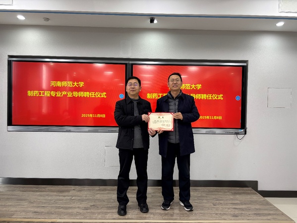 讲座开始前,首先举行了聘任仪式,正式聘请王俊臣正高级工程师、驻马店市药械检验所副所长闫晗工程师担任制药工程专业产业导师。在讲座中,王俊臣正高级工程师向与会师生介绍了药品全生命周期“药品发现、药品研发、注册、上市、退市”各阶段的特点和主要内容,并以达格列净原料药及复合制剂的关键技术开发产业化为案例阐释了药品全生命周期。