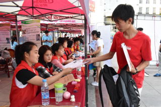 八方来客,相约九月。为迎接新生到来,我院在图书馆广场于9月7日至9月9日展开为期三天的迎新工作。2018级辅导员、2018级9位班主任老师,2016级主要学生干部和2017级全体成员投入迎新工作之中。 迎新开始前,相关人员进行准备工作,搭帐篷、搬桌椅,布置迎新点。迎新工作开展后,2017级9个班轮流值班、守夜,保证24小时为新生办理相关入学手续并带领新生入住宿舍。2018级辅导员和9位班主任在咨询台为家长新生解疑答惑。此次迎新工作中,我院加入许多富有化学特色的迎新“元素”,由化学元素组成的“化学之翼”、手工制作的手工皂和口红,以及新生大礼包,不仅充分展现了我院“绿色化学”的理念,更为新生提供了指导和帮助。迎新期间,党委书记赵国祥、党委副书记陈广文、纪委书记张尚字在相关负责人的带领下前来指导工作,对我院迎新工作的进行表示肯定以及鼓励。9月9日下午,我院迎新工作圆满完成。 此次迎新工作的开展,不仅有助于新生感受到我院对新生的关爱,而且有利于新生及时适应大学生活,加深老师和学生以及家长之间的沟通,促进我院形成良好的氛围。 (化学化工学院 阮盼盼 王俊英)