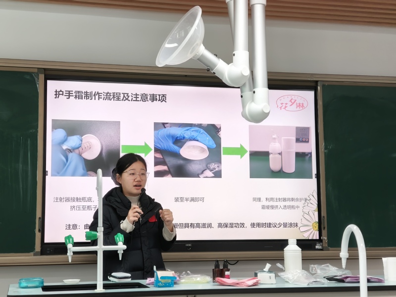 为让青少年在趣味体验中解锁化学奥秘,12月17日至21日,我院化学创新社以小学生日常接触的日化用品为切入点,在师大附小成功举办多场“指尖藏科学,护手伴成长”趣味科普实践活动,共吸引了450余名小学生参与其中。 活动当天,社团成员化身“科学导师”,通过PPT讲解、动画短片播放结合趣味问答的互动形式,将手工皂与护手霜制作背后的乳化反应等基础化学原理具象化呈现,针对孩子们提出的“化学是否都有危险性”的疑问进行解答,破除“化学=危险”的认知误区。制作护手霜环节,大家严格按照配比量取油相、水相原料,手动搅拌完成乳化过程;依次添加香精、保湿剂等辅料调整质地与香味,最后完成装瓶密封。制作手工皂环节,孩子们称量皂基后加入色素、精油,调配出不同的色彩与气味,制好的皂液用模具初步塑形,再以脱模修整收尾,专属的日化成品便呈现在每个人手中。现场气氛热烈,科普实践的魅力与乐趣扑面而来。 此次活动既让小学生在趣味实践中感受科学与生活的紧密联系,激发其科学探索兴趣,也为学子们提供了学以致用的实践平台,充分展现师大学子的知识水平与专业素养,实现科普教育与实践成长的双向赋能。 (化学化工学院 李淑萍 陈苗苗) |