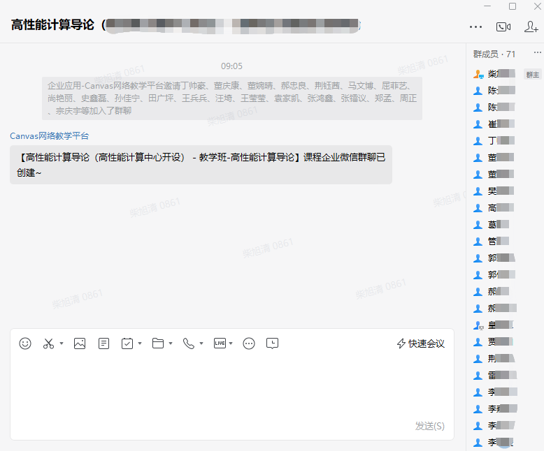 2.企业微信:登陆企业微信后,即可显示该门课程教学班级,如附图所示。