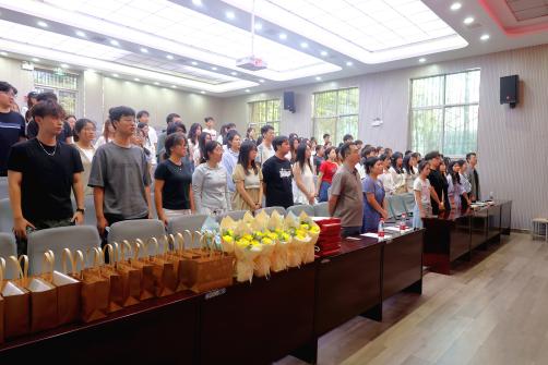 新一届学生会成员向学长学姐献上鲜花,表达诚挚谢意;学长学姐为新任学生会干部颁发聘书,饱含深切厚望。