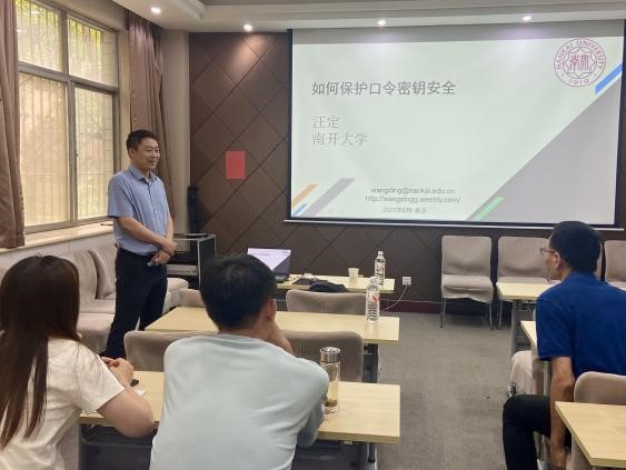 8月14日下午,应数学与统计学院邀请,南开大学汪定教授在数学南楼103室为学院师生作题为 “如何保护口令密钥安全” 的学术报告,学院相关教师和研究生参加了此次报告。此次报告由杜蛟副教授主持。 汪定教授在报告中指出,口令认证在密码学中至关重要,但当前面临漫步猜测、定向猜测攻击及个人信息泄露等威胁。用户因账户增多、口令重复率高而难以有效管理,网站则存在管理混乱和泄露检测滞后问题。此外,学术界研究多聚焦传输阶段,缺乏系统性成果,未能有效指导工业实践。汪定教授呼吁,用户、网站和研究人员需各司其职,共同推动多学科交叉研究,利用大规模真实数据提升口令安全性,弥补理论与实践的差距。 报告结束后,汪定教授就与会师生提出的相关问题进行了详细的解答,并展开了深入的讨论与交流,现场气氛热烈,学院师生表示受益匪浅。 专家简介: 汪定,南开大学教授,博导,密码与网络空间安全学院副院长、计算机学院副院长,国家级青年人才(国家优青),全国密码专业学位教指委委员,教育部数据与智能系统安全重点实验室副主任,研究方向为口令安全、密码协议。主持国家基金委、国家科学技术部、中国工程院、中国通号、华为等机构和公司的科研项目20余项。以第一作者(或通讯作者)在IEEE S&P、ACM CCS、USENIX Security、NDSS和IEEE TDSC等国内外刊物发表论文100余篇,被引用7000余次,H-index为39。研究工作引起美国身份认证标准NIST SP800-63的修改,被国家基金委官网头版、华尔街日报、福布斯等广泛报道。担任中国青年科技工作者协会理事,CCF推荐期刊IEEE TIFS、TCS、IJIS、《计算机科学》等国内外期刊的编委,ACM CCS、NDSS、IEEE EuroS&P、ACSAC等会议程序委员。获教育部自然科学奖一等奖和二等奖,中国密码学会密码创新奖一等奖。 (数学与统计学院 杜蛟) |