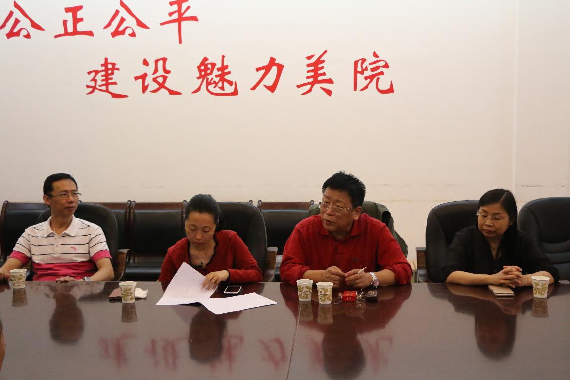 5月21日广州大学美术与设计学院常务副院长陈其和、副院长王丹一行四人到我院考察交流研究生裴元培养教育工作,美术学院院长张建伟等领导在三楼会议室同他们进行了亲切交流。