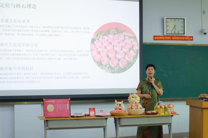 为进一步深化美育教学改革,拓展学生艺术视野,增强文化自信,6月3日下午,美术学院《中国民间美术》课程特邀非物质文化遗产“花馍”技艺传承人梁莉及其团队走进课堂,为2023级美术学专业百余名本科生带来“非遗活态传承”主题实践教学活动。本次活动以“非遗进课堂,巧手传花馍”为主题,通过理论讲授与实践体验相结合的方式,引导学生亲身感受传统技艺魅力。