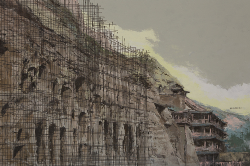 《为莫高窟搭建脚手架》 布面油画 100cm x 150cm 2017