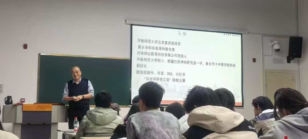 讲座现场,马恒老师围绕科学教育、创新人才培养及AI时代教师角色定位三大主题展开。他结合自身科研实践,用生动案例解读物理原理与科学探索的深层关联;聚焦“AI+教育”热点,客观剖析技术赋能教育的机遇与挑战,并针对“未来能否做老师”“物理教师需具备什么能力”等学生关切的核心问题,明确提出物理教师需锤炼独立思想、逻辑推理、创新能力三大核心素养。同时,他勉励学生树立“大学教育的价值在于训练大脑会思考”的认知,将科学素养培育融入职业成长全过程。