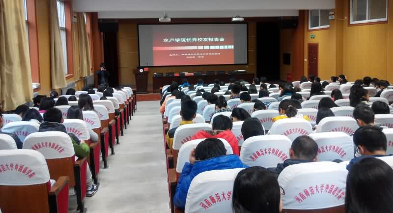 11月13日下午,我院优秀校友、96届淡水渔业专业毕业生、新希望六和股份公司豫北区域总经理陆斌在外国语学院报告厅与全院学生分享了自己的求学经历和成功经验,共话青年成长成才。报告会由院党总支副书记李保华主持。