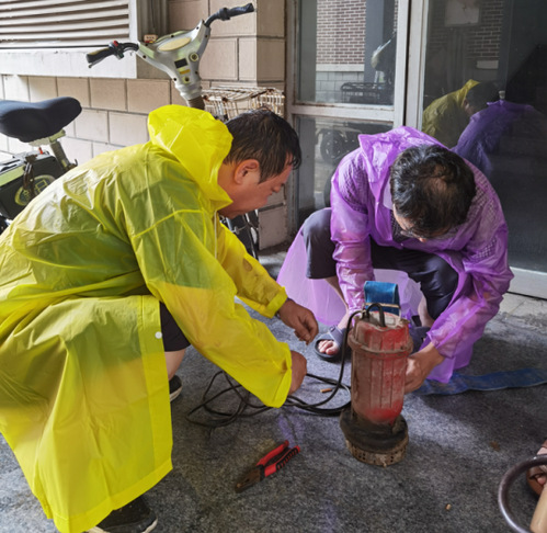 除参与学院防汛救灾和灾后防疫工作外,我支部党员老师还力所能为参与所居住小区的救灾工作。如居住在金色城邦小区的王泽同志从十八楼连续拎水十多桶,爬梯子传递给受灾严重停水停电的汇景苑小区的我院老师,保障了他们的基本生活用水;李爱景同志和小区居民共同装沙袋、加固防洪带、轮流值守,成功保障地下室无积水;李先婷同志作为康桥名苑小区志愿者之一,为维修水电的各地救援队伍煮饺子、做稀饭、烧开水,自愿参与后勤保障工作。