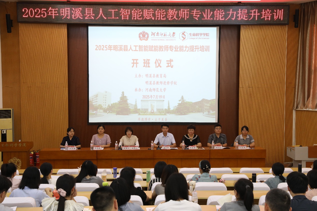 7月19日上午,明溪县人工智能赋能教师专业能力提升培训开班仪式在生物报告厅顺利举行。明溪县教育局原党组成员王彩萍、生命科学学院党委书记宋京双、学院培训管理服务团队以及明溪县40余名学科教师参加开班仪式,仪式由学院副院长宋军丽主持。