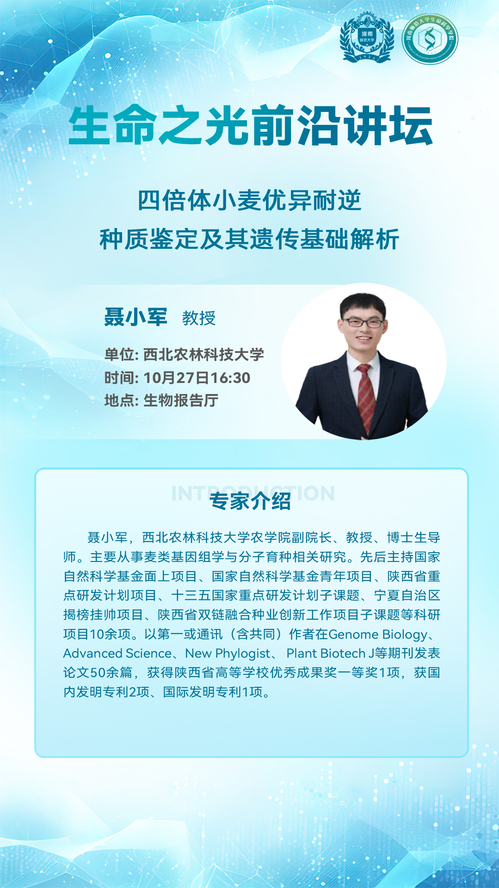学术预告——西北农林科技大学聂小军教授应邀来我院讲学