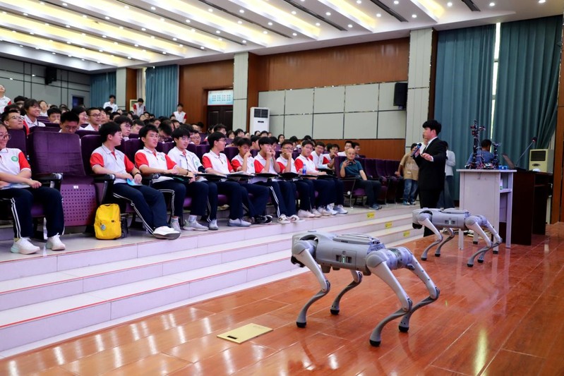 互动体验时气氛热烈,现场师生在指导下亲自操控机器人,见证指令输入到动作执行的全过程,惊叹声与欢笑声此起彼伏。