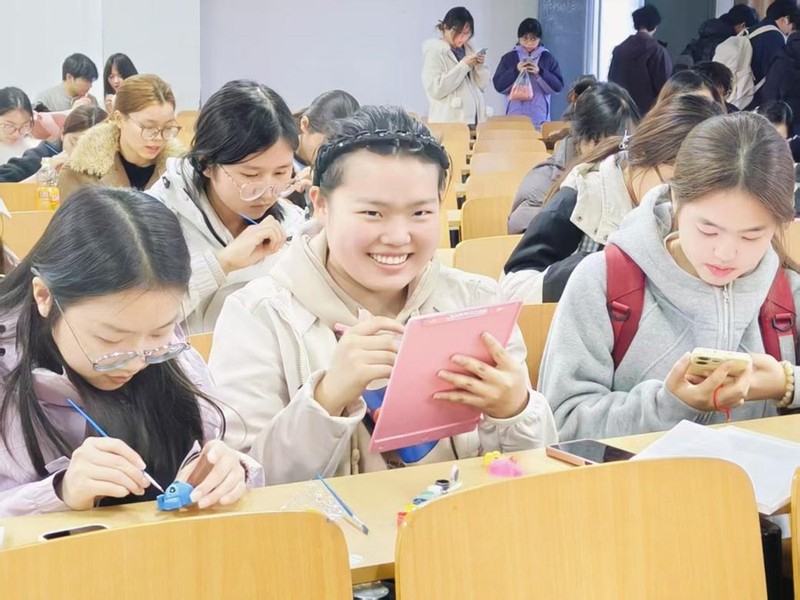 活动现场,公益手作与数字认知征集两项活动同步开展。在公益手作创作区,同学们分工协作、专注投入,亲手缝制茱萸香囊、彩绘数字涂鸦石膏娃娃,一针一线饱含对敬老院老人的美好祝福,一笔一画承载对中学生的温暖陪伴,将爱心与责任融入每一件作品。在数字认知征集区,同学们结合专业所学,围绕“数字中国”“数字中原”撰写感悟、制作贺卡,以文字传递家国情怀,让数字发展理念以温情方式传递给更多群体。