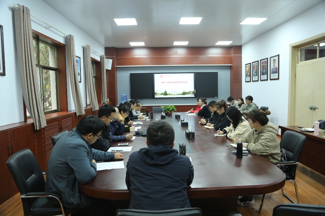 随后,教师代表王安功、闫立超、范彬、刘永强、陈小娇、赵梦宸、焦浩源等依次发言,进行交流分享。大家一致认为,“两个一百年”历史交汇点上党中央召开的十九届五中全会是具有里程碑意义的重要会议,全会擘画了国家未来发展的波澜壮阔的新图景,明确了前进方向和奋斗目标,作为一名新时代的高校教育工作者,要认真学习领会十九届五中全会精神,聚焦立德树人根本任务,深入推进思政课改革创新,推动十九届五中全会精神入课堂入头脑,积极发挥思政课铸魂育人的作用。学生代表韩孟月、黄敬云、赵宇璇踊跃发言,她们表示,作为肩负使命的新时代青年,在学习五中全会精神时要注重学思结合、学以致用、大胆创新,不断培养学术志趣、锤炼学术水平,用自身实际行动贯彻落实五中全会精神,做德智体美劳全面发展的社会主义建设者和接班人!