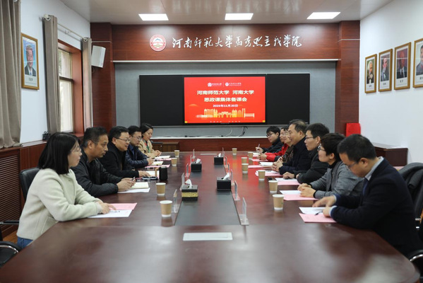 为深入学习贯彻党的二十届四中全会精神,推进思想政治理论课教学改革,11月20日上午,我院与河南大学马克思主义学院召开跨校集体备课会。学院党委书记张长伟、副院长姚广利,河南大学马克思主义学院原理党支部书记朱格锋、原理教研室主任靳中辉及教师代表,我院思政课教研室主任代表、思政课教学秘书参加会议。