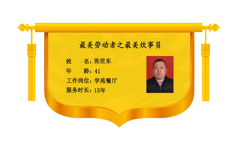张世东,男,汉族,河南新乡人,1978年2月出生,现任学苑餐厅炊事员。