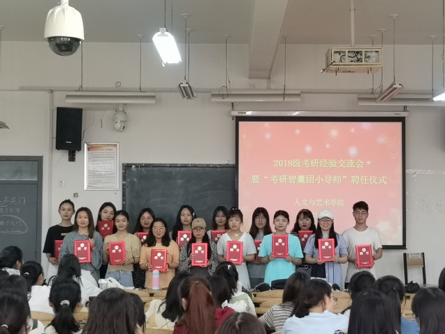 为彰显榜样力量,积极做好2018级学生考研咨询工作及考研精准帮扶指导工作,结合学院党史学习教育中正在深入开展的 “我为学生办实事”部署安排,人文与艺术学院于5月27日上午,成功举办考研经验交流会暨“考研智囊团小导师”聘任仪式, 2018级英语、汉语言专业全体学生、2017级16位考研录取同学参加了本次交流会,会议由辅导员申环主持,党总支副书记孔艺颁发聘任证书。