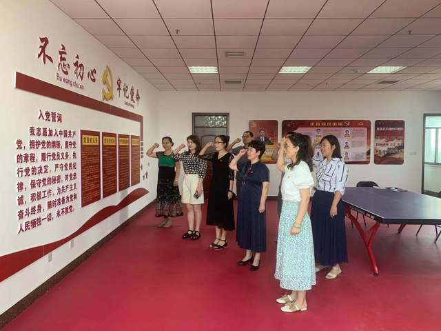 党课结束后,刘素婷带领全体党员在图书信息楼八楼党建活动室重温了入党誓词。