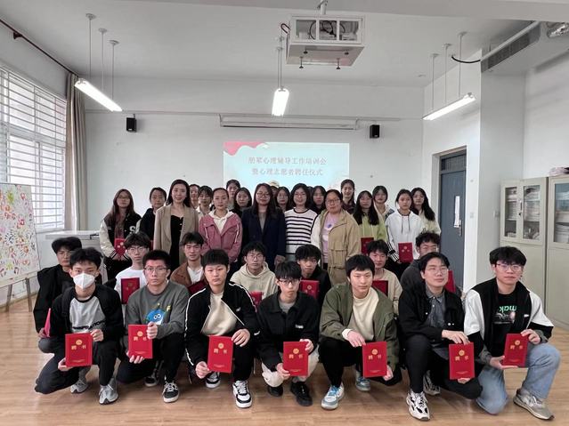 为进一步提升校区心理健康教育工作实效,培养学生积极情绪,探索朋辈心理辅导的新渠道,3月31日,朋辈心理辅导工作培训会暨心理志愿者聘任仪式在向知楼团体咨询室顺利举行,心理健康教育与咨询中心全体专兼职教师参加。会议首先由中心教师唐乐向同学们阐述朋辈心理辅导的概念以及心理志愿者的工作职责,引领大家深入挖掘自己的助人优势,以丰富的案例阐述有效的助人和沟通技巧。随后,志愿者代表们相互交流工作感受,纷纷表达了自己对朋辈心理辅导这一助人工作的热爱。培训结束后,中心专兼职心理咨询教师为全体受聘同学颁发聘书。最后,中心主任金凝对于朋辈心理志愿者在心理健康教育工作中的付出表示衷心感谢。希望在未来的学习生活中,志愿者们可以再接再厉,积极投身于为同学服务中,做好照亮大家前往心灵港湾的路灯。心理志愿者团队秉承“团结、温暖、真诚、互助”的宗旨,在系统化的培训和指导下,普及宣传心理健康知识,开展心理互助和素质拓展活动,在大学生心理育人工作中发挥着积极作用。(心理健康教育与咨询中心 唐乐)